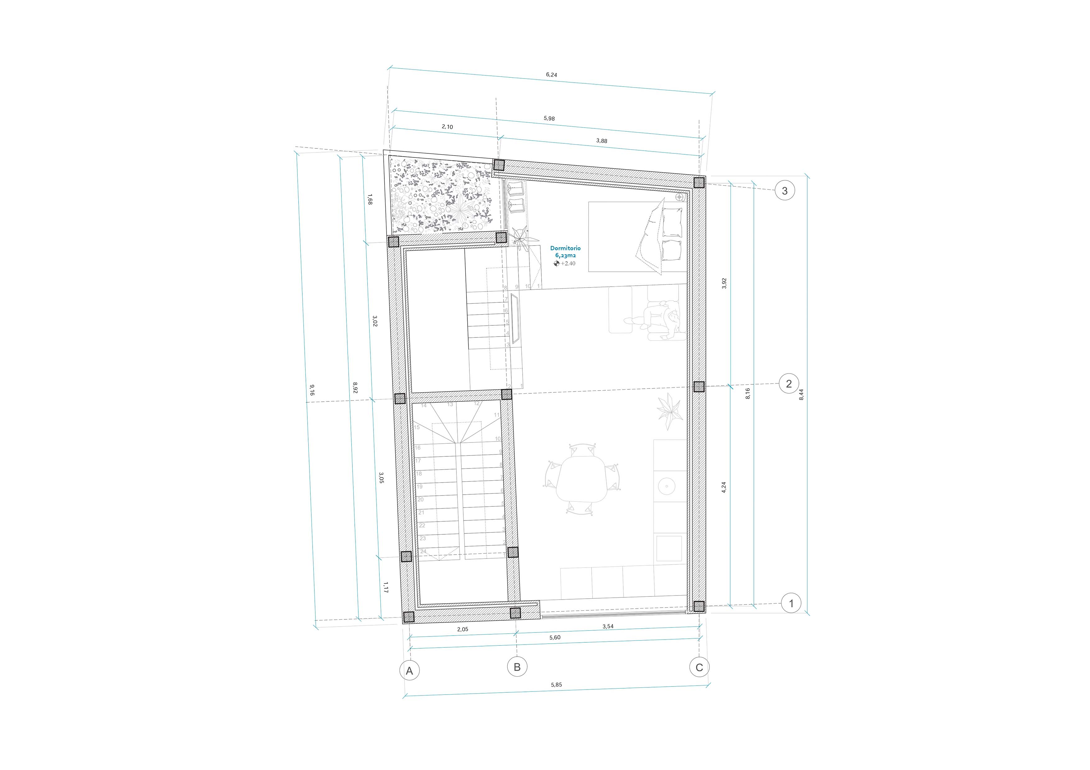 El proyecto fue dirigido hacia dos hermanas que contaban con una parcela en la que querían construir una vivienda para cada una. La idea fue la de incorporar una vivienda por planta, en las cuales el espacio quedaría diáfano a excepción del baño, y la habitación quedaría en un altillo también abierto al resto de la vivienda.
