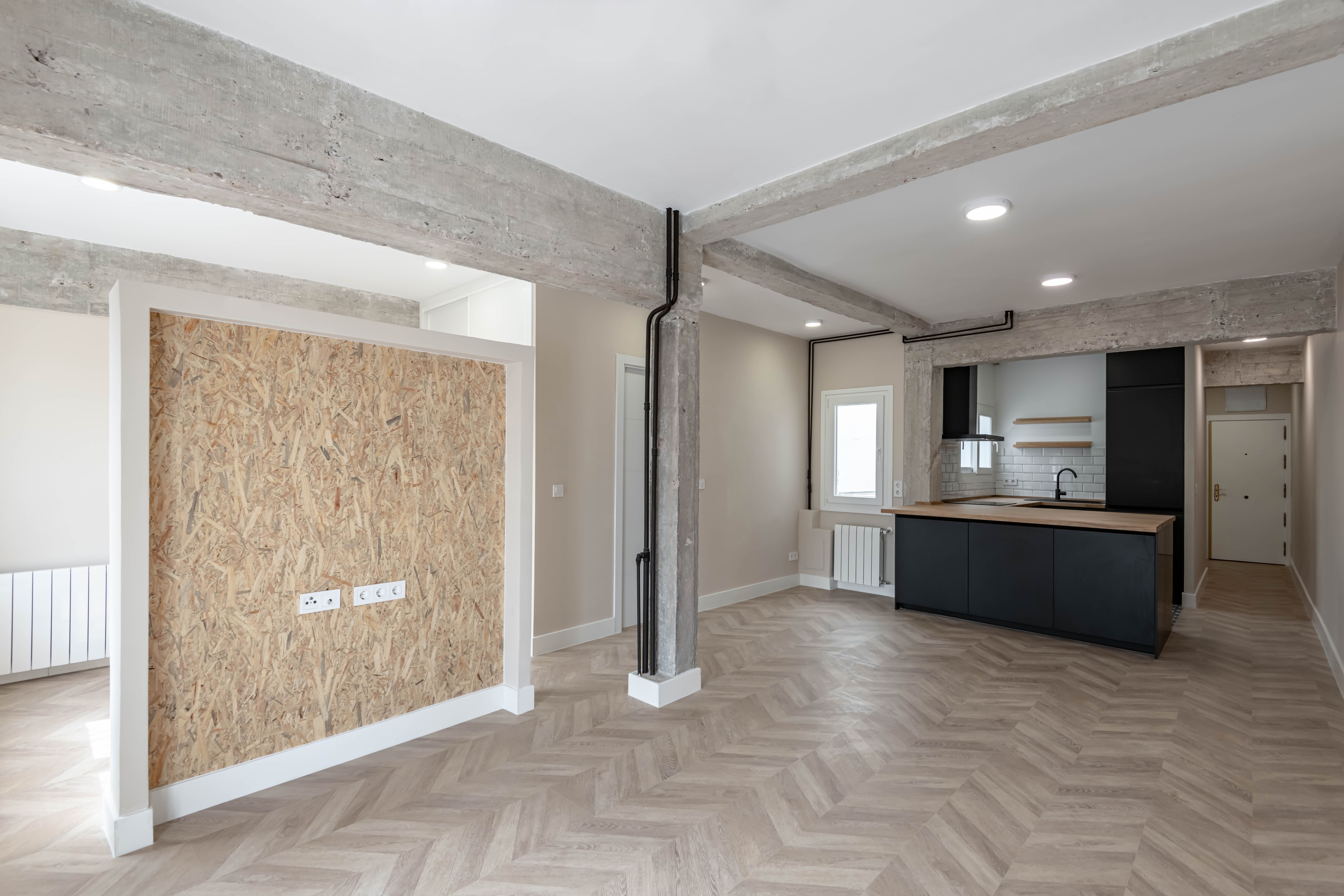 Se realizó un proyecto completo de diseño de interiores proporcionando al cliente varias opciones para la distribución de su vivienda. Una vez decida la distribución, se inició la reforma completa, que duró 3 meses. El resultado fue un piso totalmente renovado con la estructura vista y la cocina abierta como centro de la vivienda.